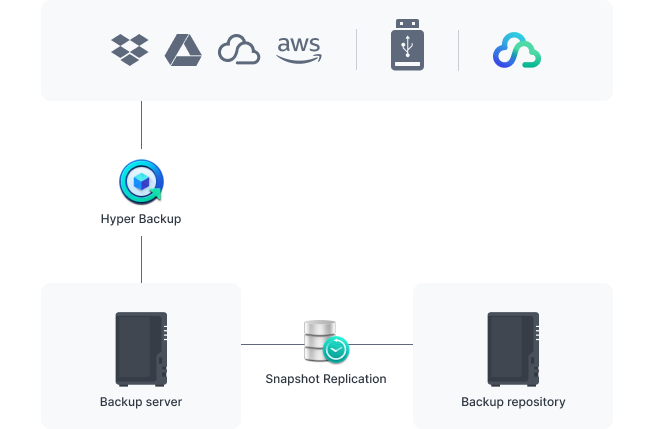 Back up your entire NAS, including system settings and applications, or select specific folders. Secure all backup data to multiple destinations.