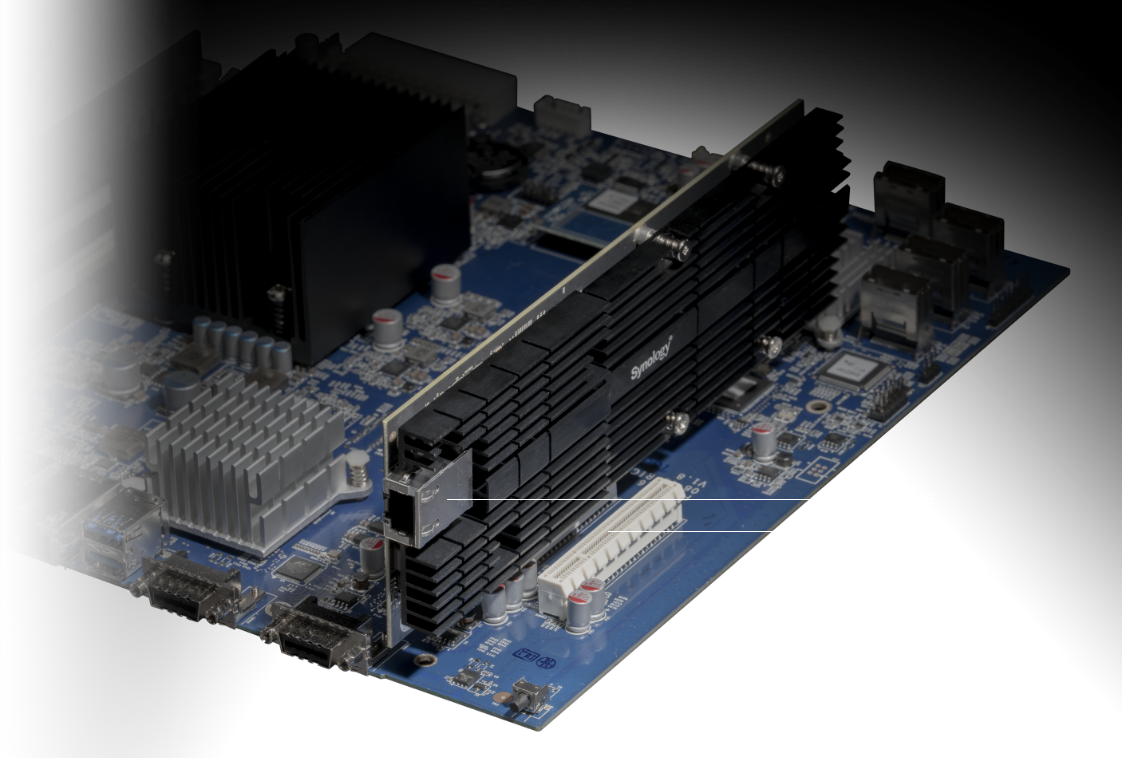 Boost read/write IOPS by up to 16 times by enabling SSD cache via our Synology M.2 NVMe adapter cards and SNV3000 Series SSDs or by installing one or more 2.5” SAT5200 SSDs.